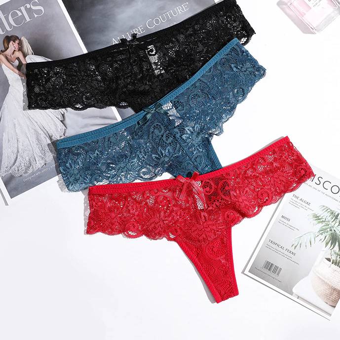 Set of 3 Women's Thongs in Lace