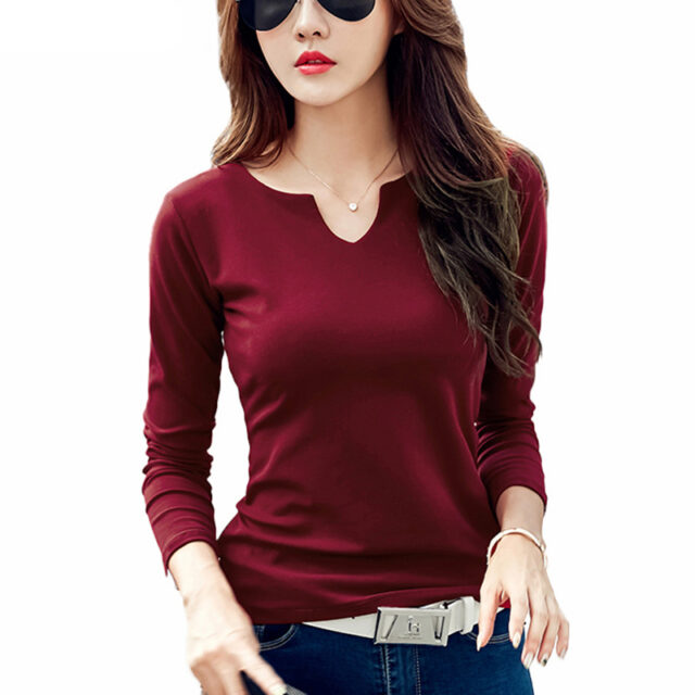 Women's Long Sleeved V-Neck Cotton Pullover